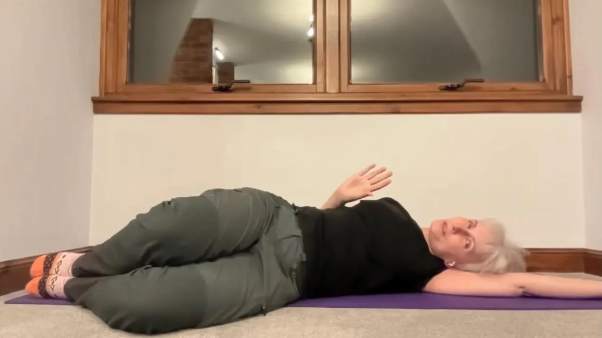 Lying on side, an easy way to turn for your spine. 30 mins.